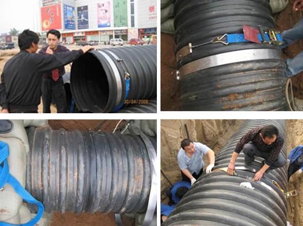 特點:①依據(jù)管材纏繞成型的特點,峰谷的寬度一般在60~80mm之間,帶子較窄,沿管材切口熱熔焊接。